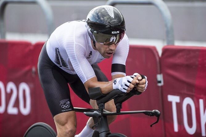 One of his final times wearing the New Zealand Black jersey, was competing in the road race with George Bennett at the Tokyo Olympic Games in 2021.