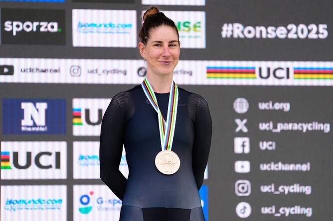 Waikato’s Nicole Murray manoeuvred her way over wet roads and cobbles to claim the bronze medal in the women’s C5 time trial on day two of the UCI Para-cycling Road World Championships in Belgium.