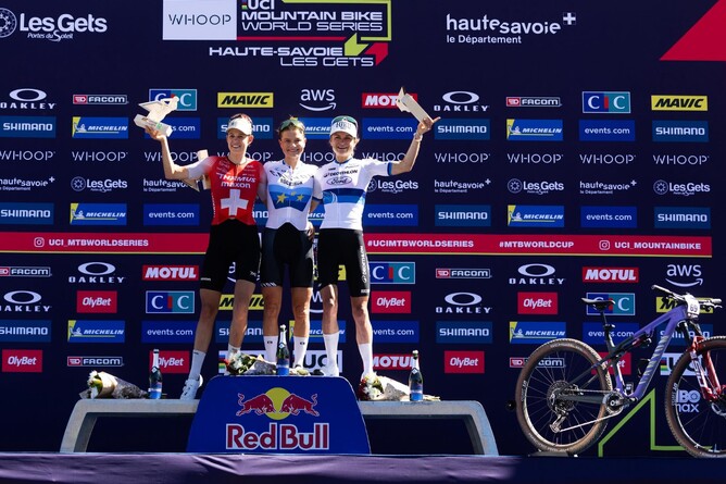 Result: UCI MTB Cross-country, Rd 7 Les Gets: Women elite: Jenny Rissveds (SWE) 1:12.01, 1; Alessandra Keller (SUI) at 1:12, 2; Samara Maxwell (Decathlon Ford, NZL) at 1:32, 3.