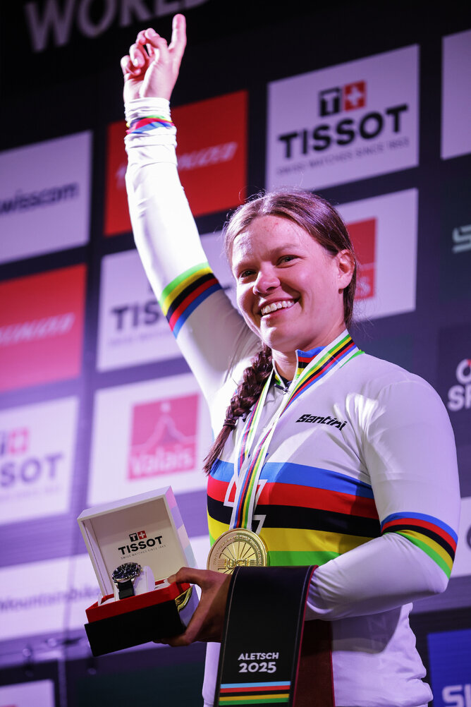 Nelson rider George Swift set the New Zealand team abuzz, becoming the elite women’s E-Enduro World Champion in the first event of the 2025 UCI MTB World Championships in Switzerland today.