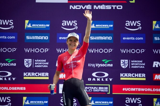 The Decathlon Ford rider was forced to work her way through the field after an indifferent short track race result earlier in the week saw her start from 25th on the grid. Maxwell worked her way forward gradually, catching the leaders midway through the eight-lap race at the famed course in Nové Mesto Na Moravé.
