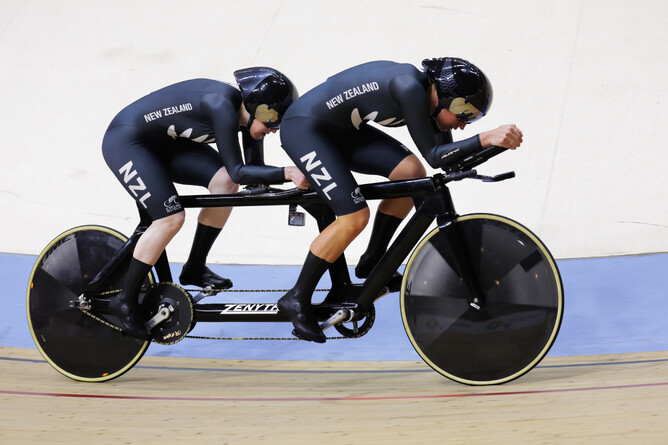 Women BVi 4000m Individual Pursuit, qualifying Great Britain 3:32.697, 1; New Zealand (Emma Foy/Jesse Hodges) 3:35.530, 2 (NZ Record); Great Britain 2 4:37.298, 3; Poland 4:52.396, 4.