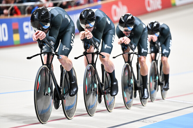 New Zealand men’s team pursuit produced an outstanding performance to claim the bronze medal to highlight day two of the UCI Track Cycling World Championships in Santiago, Chile today.